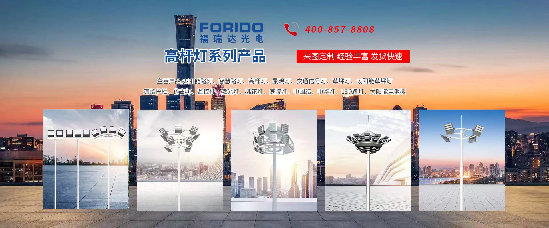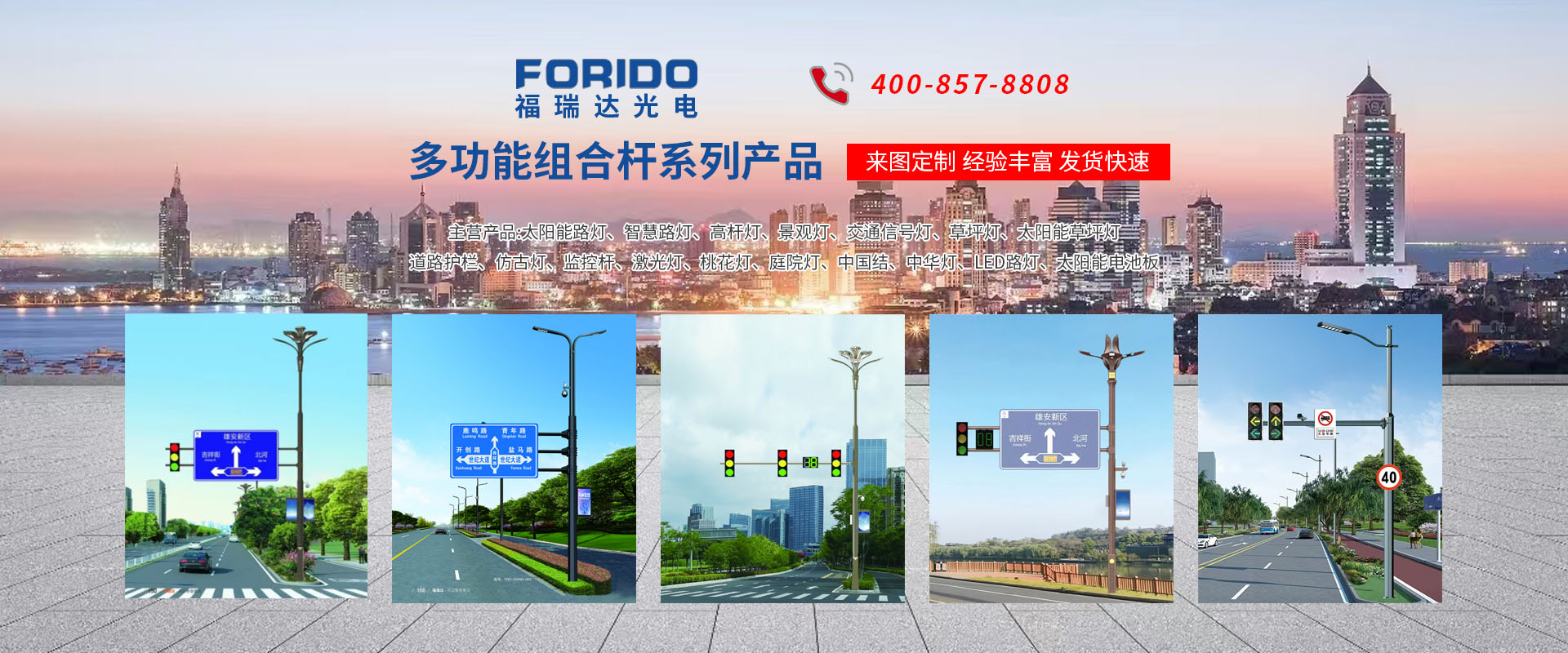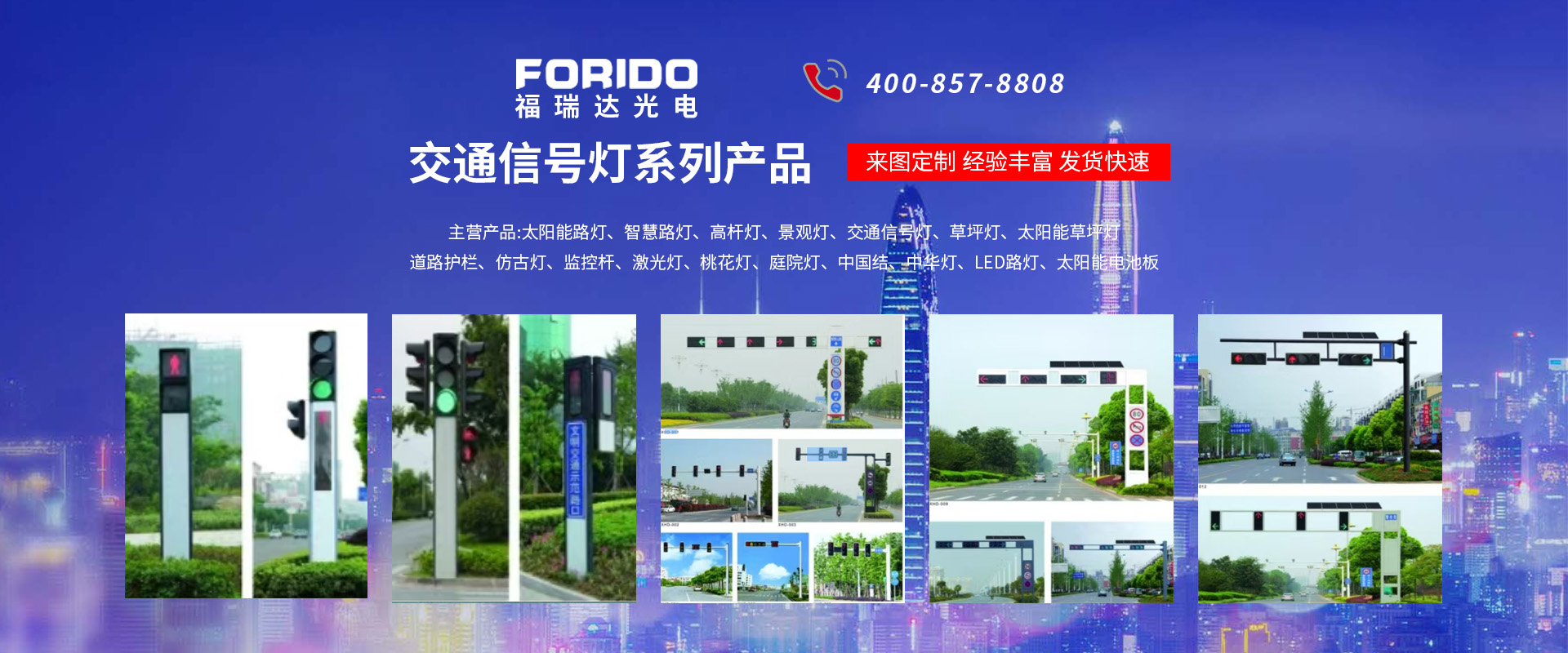 揚(yáng)州福瑞達(dá)光電科技有限公司位于淮左名都?xì)v史文化名城、中國路燈制造基地?fù)P州市北郊菱塘工業(yè)園,公司占地面積76000平方米,注冊資金10518萬元,擁有高級技術(shù)嫻熟的員工280多人,擁有大型折彎機(jī)、激光切割、數(shù)控注塑機(jī)、壓鑄機(jī)、自動埋弧焊、氣焊、彩色粉末靜電噴塑等大型自動化設(shè)備,我公司是一家集設(shè)計(jì)、研發(fā)、生產(chǎn)、銷售、施工安裝服務(wù)為一體的戶外交通照明產(chǎn)品制造商,主要生產(chǎn)智慧路燈、太陽能路燈、LED路燈、高桿燈、景觀燈、交通信號燈、交通標(biāo)志牌、通信鐵塔、路跨鋼結(jié)構(gòu)、公交站臺、太陽能光伏組件、景點(diǎn)亮化、樓宇亮化工程的設(shè)計(jì)施工等。公司秉承開拓創(chuàng)新、銳意進(jìn)取、精誠服務(wù)的企業(yè)精神,堅(jiān)持以“誠信為本、技術(shù)為先、服務(wù)是金”的合作理念,我們憑借先進(jìn)的制造工藝、優(yōu)質(zhì)的產(chǎn)品質(zhì)量、合理的市場價(jià)格和完善的售后服務(wù)贏得了廣闊的市場和客戶的信賴。  我公司已通過ISO9001質(zhì)量體系認(rèn)證、ISO14001環(huán)境管理體認(rèn)證,CQC產(chǎn)品認(rèn)證,中國節(jié)能產(chǎn)品認(rèn)證,通過“CCC”強(qiáng)制性產(chǎn)品認(rèn)證,具有市政總承包,照明,交安,設(shè)計(jì)等資質(zhì)···